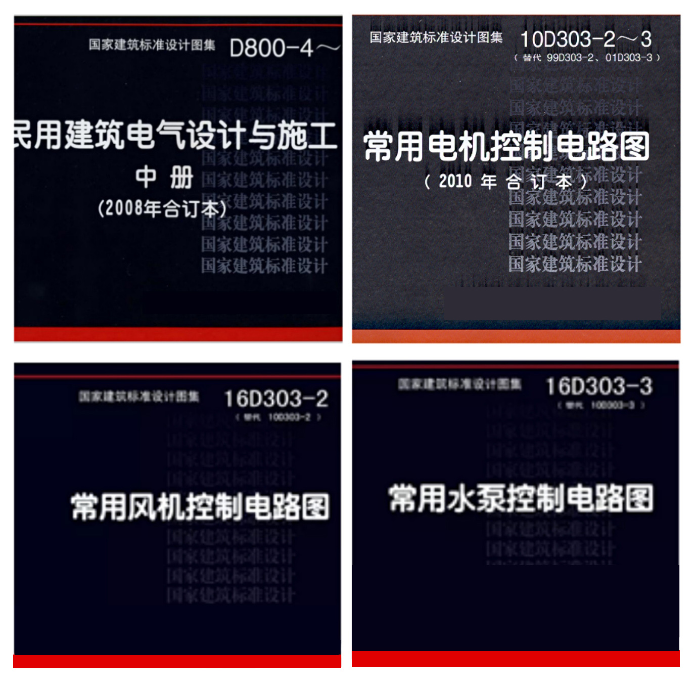 該圖集的風機電路圖部分根據風機、閥門不同情況和使用要求,設計了32種不同類型的控制電路圖,其中消防風機類14種、非消防風機類18種;水泵電路圖部分包含了消防泵、生活給排水泵、熱水循環泵、穩壓泵、排水泵和雨水提升泵6大類36種不同類型的控制電路圖,其中消防水泵類10種,非消防泵類19種。