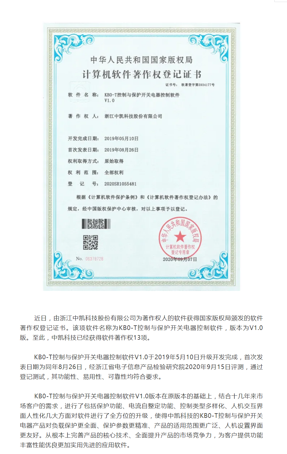 中凱科技又雙叒叕獲一項軟件著作權登記