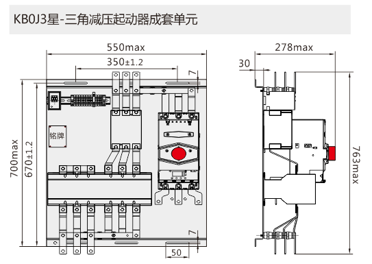 適用于電動機星-三角減壓起動的控制與保護,以KB0產(chǎn)品作為主開關(guān),與塑殼斷路器、可逆接觸器、時間繼電器、電氣聯(lián)鎖及控制回路組合構(gòu)成星-三角減壓起動的控制與保護裝置。