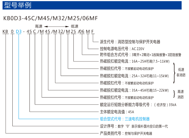 以KB0作為主開(kāi)關(guān),與接觸器、電氣聯(lián)鎖等附件組合,構(gòu)成三速電動(dòng)機(jī)控制KB0D3,適用于三速電動(dòng)機(jī)的控制與保護(hù)。