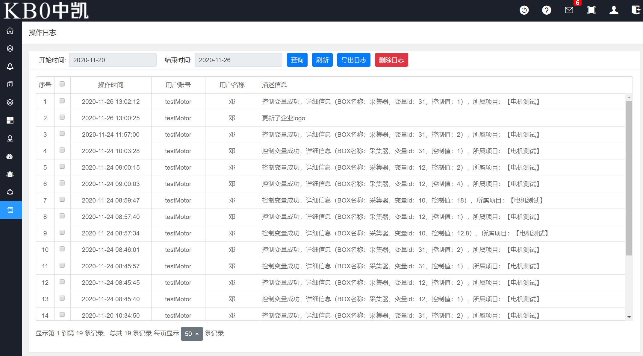系統(tǒng)將各種狀態(tài)的變化和操作人員的操作活動情況記錄到日志程序中,用戶可通過日志進(jìn)行維護(hù)管理